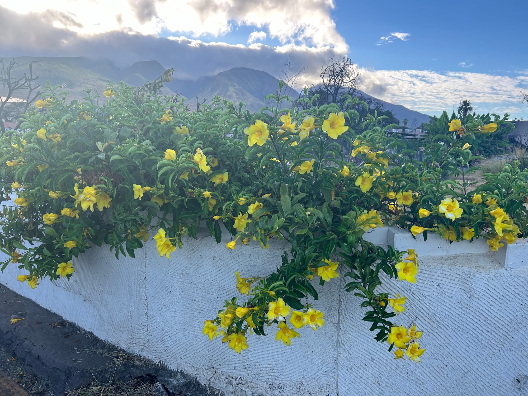 Allamanda cathartica (“Golden Trumpet”). Cathartica, since it can be used to induce purging/vomiting. Flower of Puerto Rico.